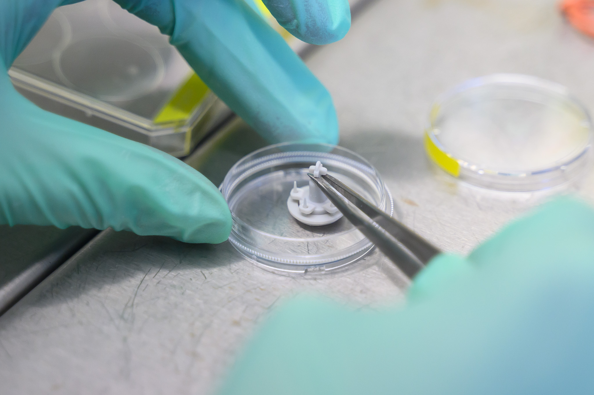 Thanks to unique layering technology and chemical crosslinking, it will be possible to create controlled gradients of growth factors, mechanical properties, and extracellular matrix composition within the material—key signals that guide cell behavior.